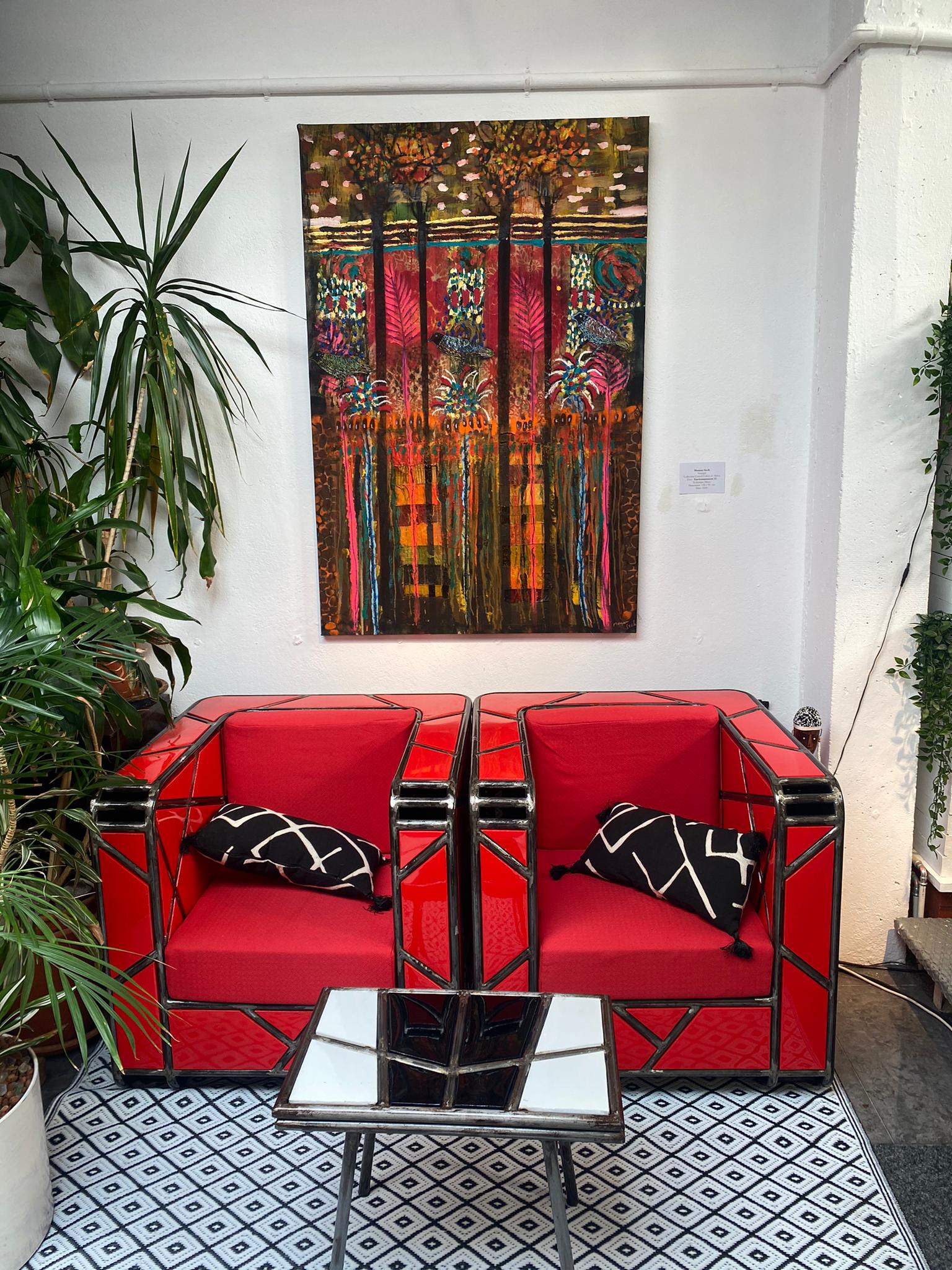 Soly Cissé Soly Cissé, peintre et sculpteur de techniques mixtes originaire de Dakar, est l’un des artistes les plus célèbres du Sénégal et décrit son art comme expérimental. Ses peintures sont à la fois picturales et graphiques, ancrées dans la culture de sa ville natale et chargées de contenu autobiographique. Soly a été profondément inspiré par son éducation en grandissant pendant une période de troubles politiques et sociaux au Sénégal, où l’art a servi de mode d’activisme social et d’expression de soi. Son art est devenu un exutoire passionné de son indignation contre les injustices sociales. «Je pense et réfléchis beaucoup aux humains et à leurs relations. Les relations entre les humains, la confrontation entre les humains et la nature, les humains et la religion, puis je me défie et expérimente »