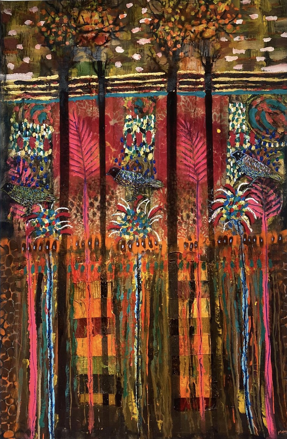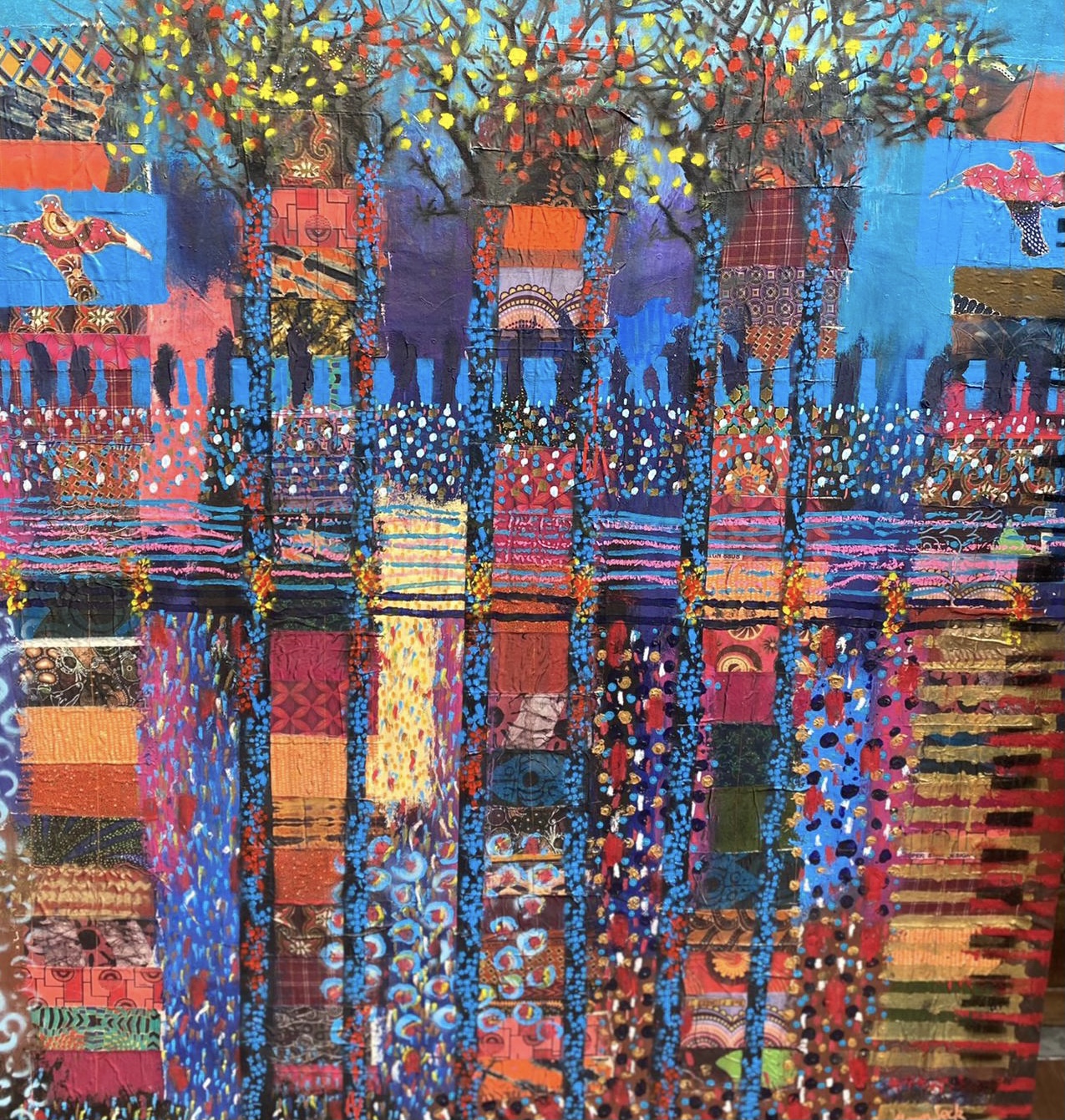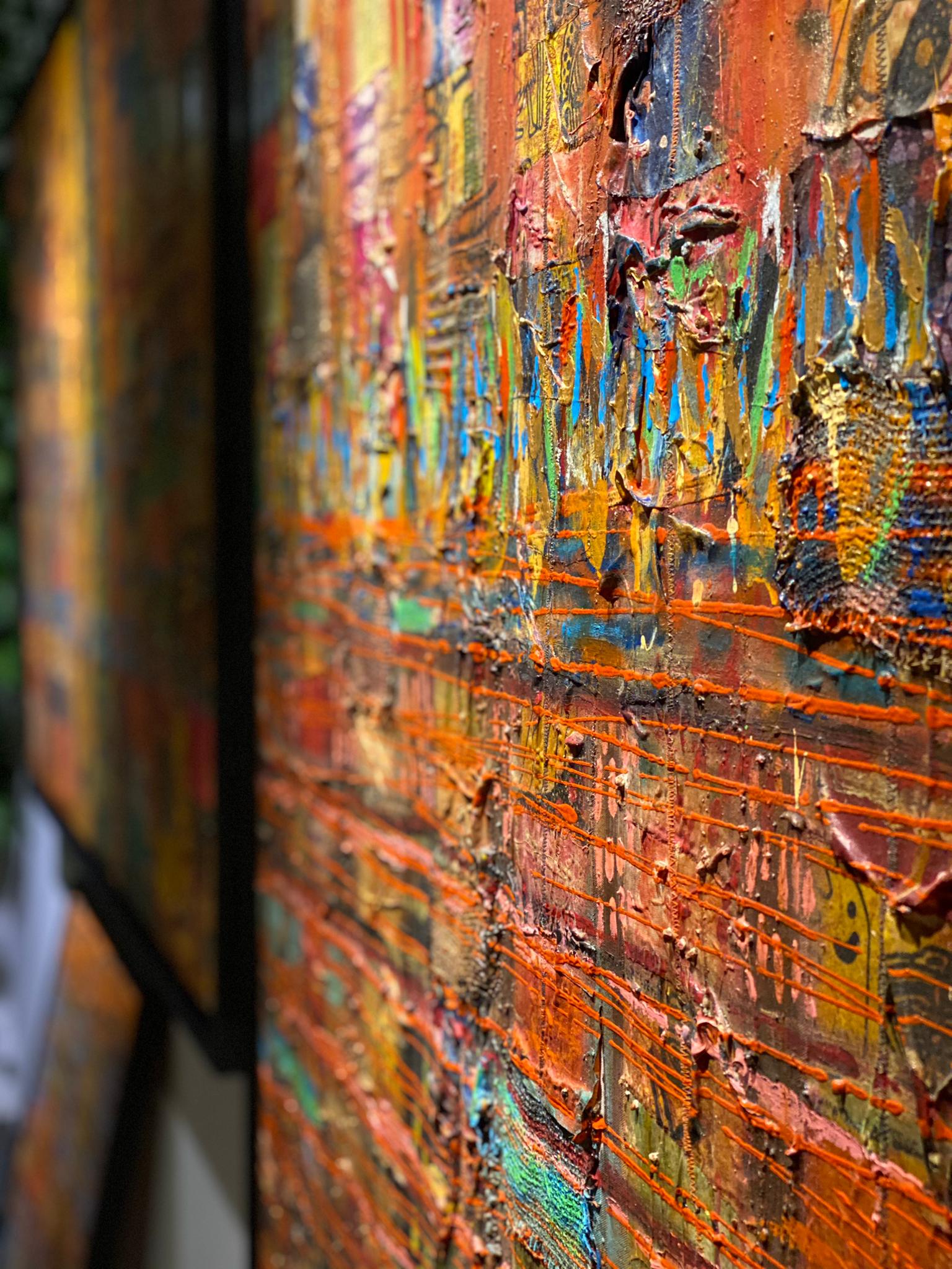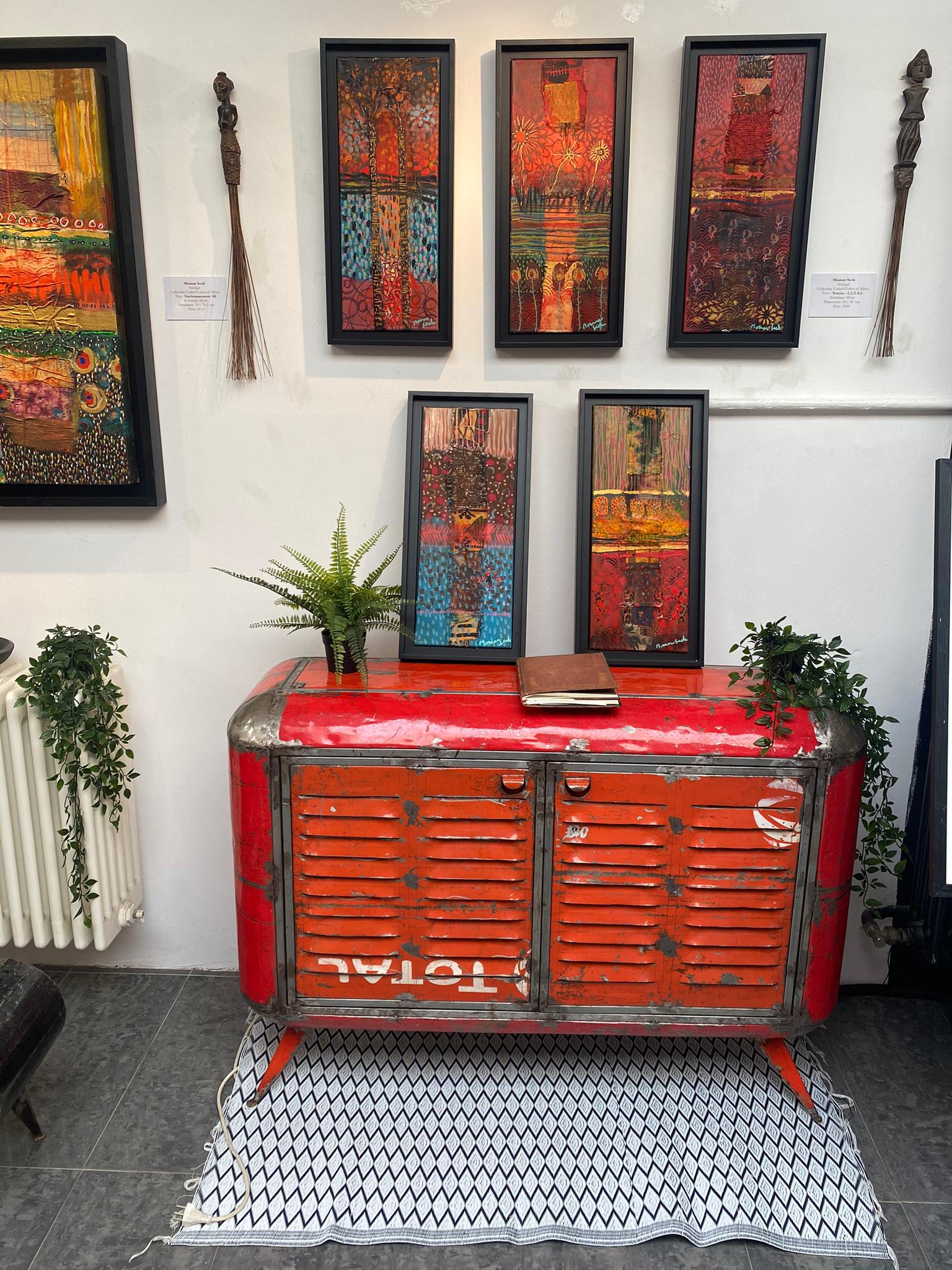 L’unité dans la diversité. Momar Seck décrit ses créations comme des unités plurielles. Ses toiles et ses sculptures sont issues d’assemblage de matériaux divers comme autant de métaphores de la diversité du monde et de l’humain. Une palette colorée rehaussée d’incrustations dont des bouts d’étoffe et autres fragments qui ont, eux aussi, leur histoire. La variété des textures et des couleurs font de chaque création un symbole à la fois d’union et d’interdépendance fragile : une diversité qui ne tient qu’à un fil et qui pourtant est une force. Chaque œuvre apparait comme « une diversité singulière ».« Ma création est née de mon substrat culturel et se nourrit de croisements incessants avec d’autres cultures. » Artiste, peintre et sculpteur, Momar Seck est un citoyen du monde. Sénégalais d’origine, suisse installé à Genève depuis plusieurs années, Momar expose régulièrement en Europe et au Sénégal, notamment à la Biennale d’art africain contemporain de Dakar.