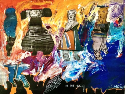 Soly Cissé Soly Cissé, peintre et sculpteur de techniques mixtes originaire de Dakar, est l’un des artistes les plus célèbres du Sénégal et décrit son art comme expérimental. Ses peintures sont à la fois picturales et graphiques, ancrées dans la culture de sa ville natale et chargées de contenu autobiographique. Soly a été profondément inspiré par son éducation en grandissant pendant une période de troubles politiques et sociaux au Sénégal, où l’art a servi de mode d’activisme social et d’expression de soi. Son art est devenu un exutoire passionné de son indignation contre les injustices sociales. «Je pense et réfléchis beaucoup aux humains et à leurs relations. Les relations entre les humains, la confrontation entre les humains et la nature, les humains et la religion, puis je me défie et expérimente »