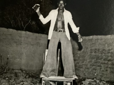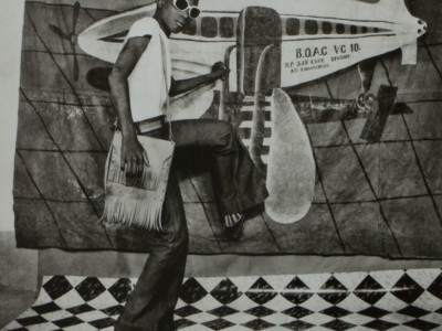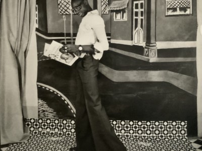SANLÉ SORY photographe Burkinabé crée dans les années soixante, le Studio Volta Photo véritable espace de magie et de fantaisie sur plusieurs décennies (1960-1985). Ses photographies -archives vivantes ou instantanés de vie prises sur fonds de scènes peints, utilisent des accessoires de modernité de l’époque: téléphone, guitares, transistors, motos ou disques. Les vinyles symbolisent une véritable révolution culturelle post indépendance. Les photographies de Sanlé SORY célèbre les nuits yéyées de Bobo Dioulasso etsont la bande-son originale et pourtant silencieuse de ces années d’exubérance rythmée par la musique yéyé, le jazz, le rock ou les groupes voltaïques émergents – chacun y entend ce qu’il veut.