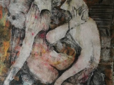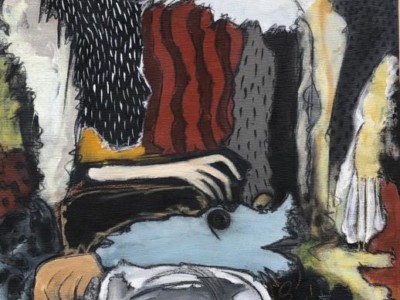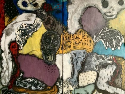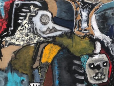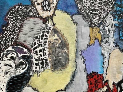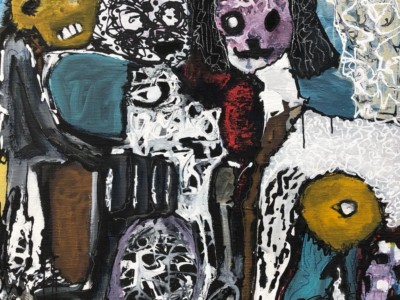 Les œuvres de Sambou Diouf et d’Ibrahima Cissé dit Deb’s sont une invitation au voyage vers un autre réel. Leurs personnages aux silhouettes atomisées et aux visages déformés sont des exorcismes picturaux.