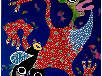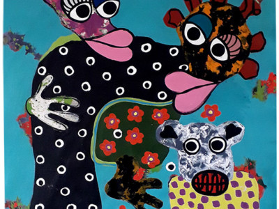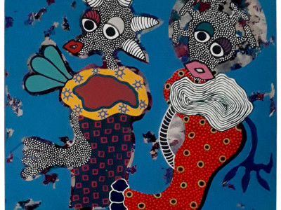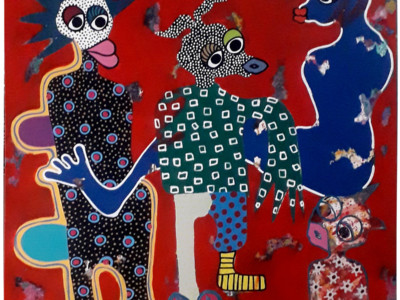 Au début dans le vide de l’univers, tout à commencé par le son « YO » incluant tout et surtout la conscience humaine. Koni, le dieu suprême et le créateur du monde, a selon la mythologie bambara créé 3 esprits dont Faro- l’esprit de l’eau, Pemba – l’esprit de la terre et Teliclo – l’esprit de l’air . A travers la création de deux sets de jumeaux le monde a été peuplé d’animaux et de plantes ainsi que d’êtres humains tous issus des graines d’acacias . L’ancrage des racines /pieds des personnages à la fois humain, végétal et animal est représenté dans les tableaux de Soul come une base solide et unitaire . Cet ancrage représente la racine de l’évolution de l’homme dans cette mythologie où « tout est venu de rien » mais est en harmonie avec la notion de racine commune de l’âme humaine .