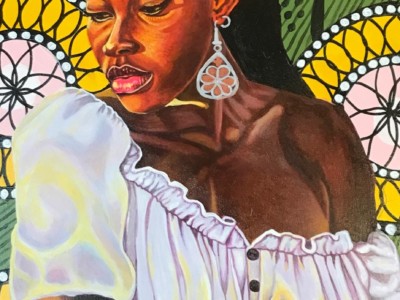 Messe BIDIAS artiste camerounais , s’inspire de l’héritage artistique africain et des mouvements modernes tels que le cubisme, le surréalisme et le pop art. Ses toiles utilisent une palette de couleurs vibrantes et fluorescentes mettant en valeur la force, la beauté et la grandeur du continent africain situant ses sujets dans des environnements définis et complexes. Dans la nouvelle série « Together but apart » Messe livre un récit intimiste de sa propre histoire retraçant les exigences et défis de l’exil temporaire . Après avoir quitté récemment son pays natal, il évoque un déracinement qui induit unemyriade de nouveaux codes, de questionnements et d’attitudes tant dans la sphère individuelle des relations amoureuses que dans ses interactions sociales.