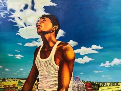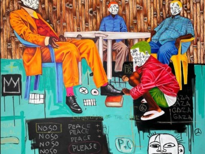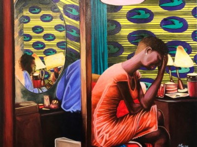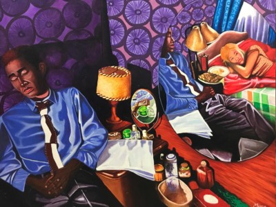 Messe BIDIAS artiste camerounais , s’inspire de l’héritage artistique africain et des mouvements modernes tels que le cubisme, le surréalisme et le pop art. Ses toiles utilisent une palette de couleurs vibrantes et fluorescentes mettant en valeur la force, la beauté et la grandeur du continent africain situant ses sujets dans des environnements définis et complexes. Dans la nouvelle série « Together but apart » Messe livre un récit intimiste de sa propre histoire retraçant les exigences et défis de l’exil temporaire . Après avoir quitté récemment son pays natal, il évoque un déracinement qui induit unemyriade de nouveaux codes, de questionnements et d’attitudes tant dans la sphère individuelle des relations amoureuses que dans ses interactions sociales.