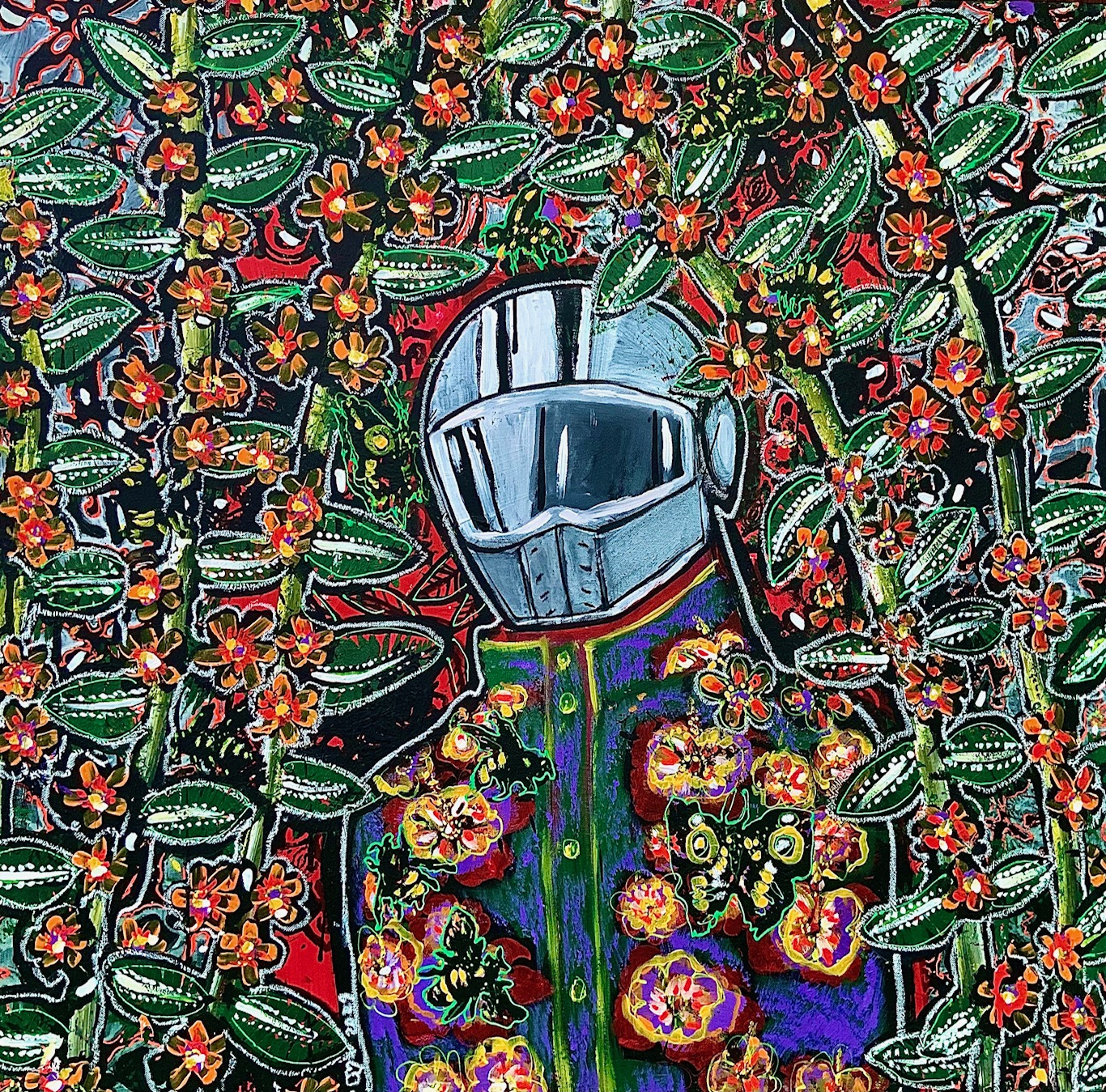L’artiste y dénonce les incohérences et la violence de la société contemporaine, tout en offrant une représentation florale luxuriante comme un Eden à préserver d’urgence.