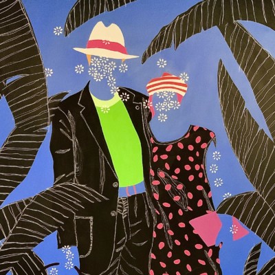 Mais sous l’apparente légèreté du traitement avec des aplats de couleurs vives et acidulées, des découpes de feuillages sombres, l’artiste veut nous faire passer son message, être le porte-voix des sans-voix, nous faire réaliser la présence des absents, tous ces personnages qui hantent nos avenues et nos mémoires et que nous ne voyons plus, que nous ne voulons plus voir.
