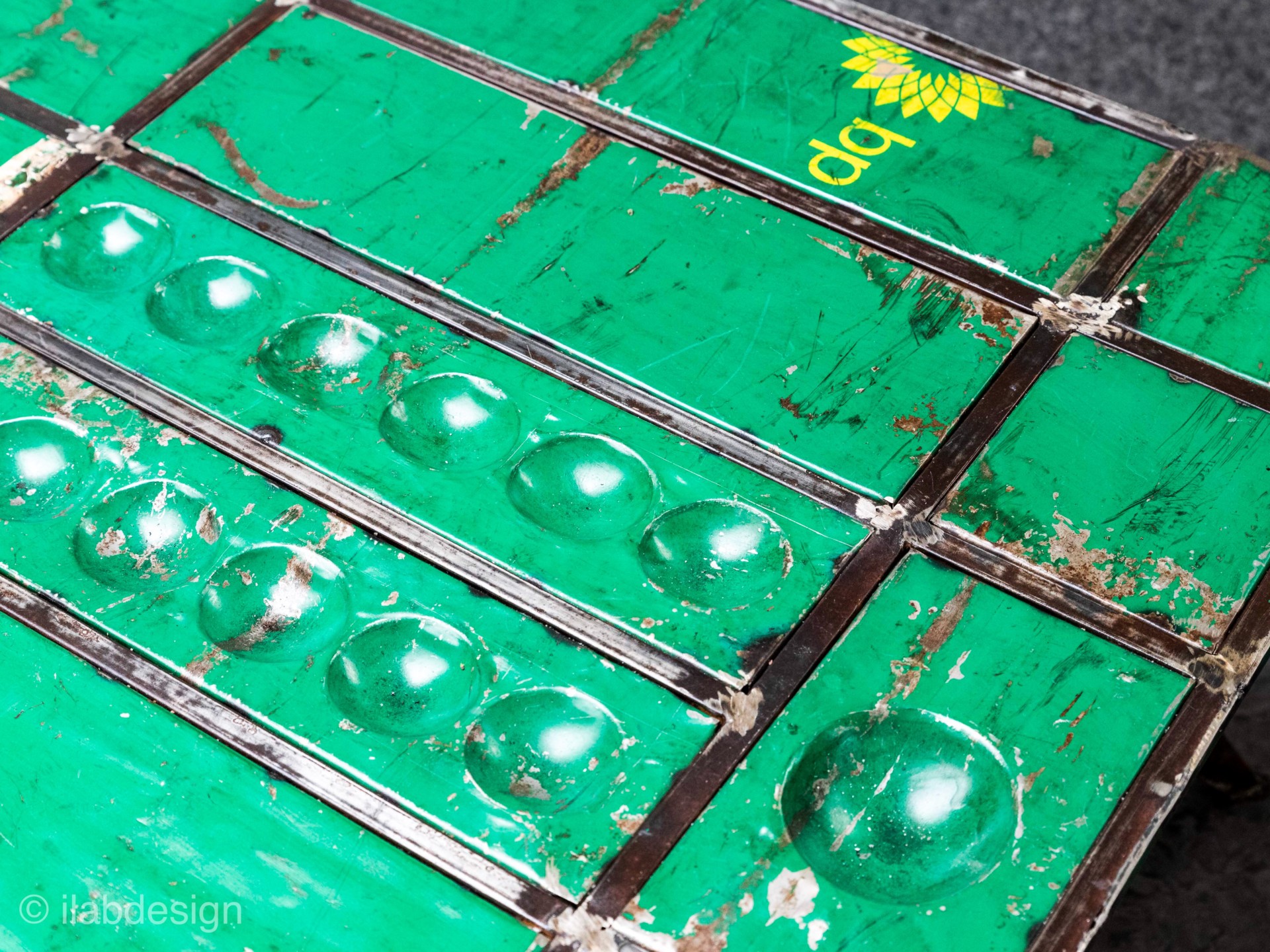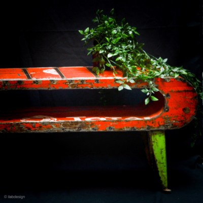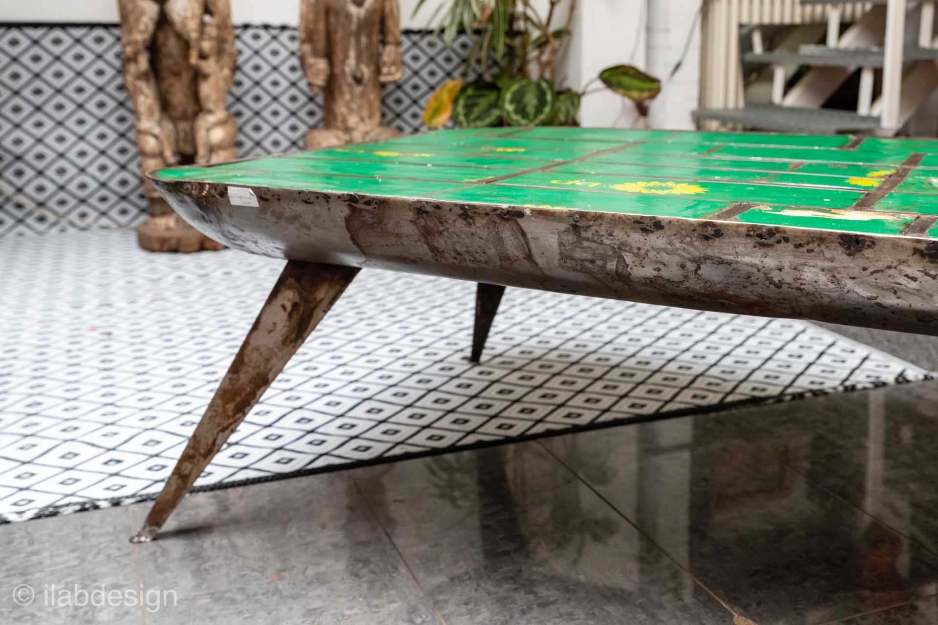 Table Crapaud verte en fer de baril de pétrole recyclé
