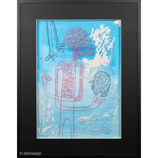 His work is drawn with chalk on canvas on dark fabrics. He paints with golden paint, red blood or white stretches vivaciously on jeans or plastic, to finally give life to the free expression of his being. His techniques, as diverse as the unusual or ephemeral materials he uses, give his work a unique character.