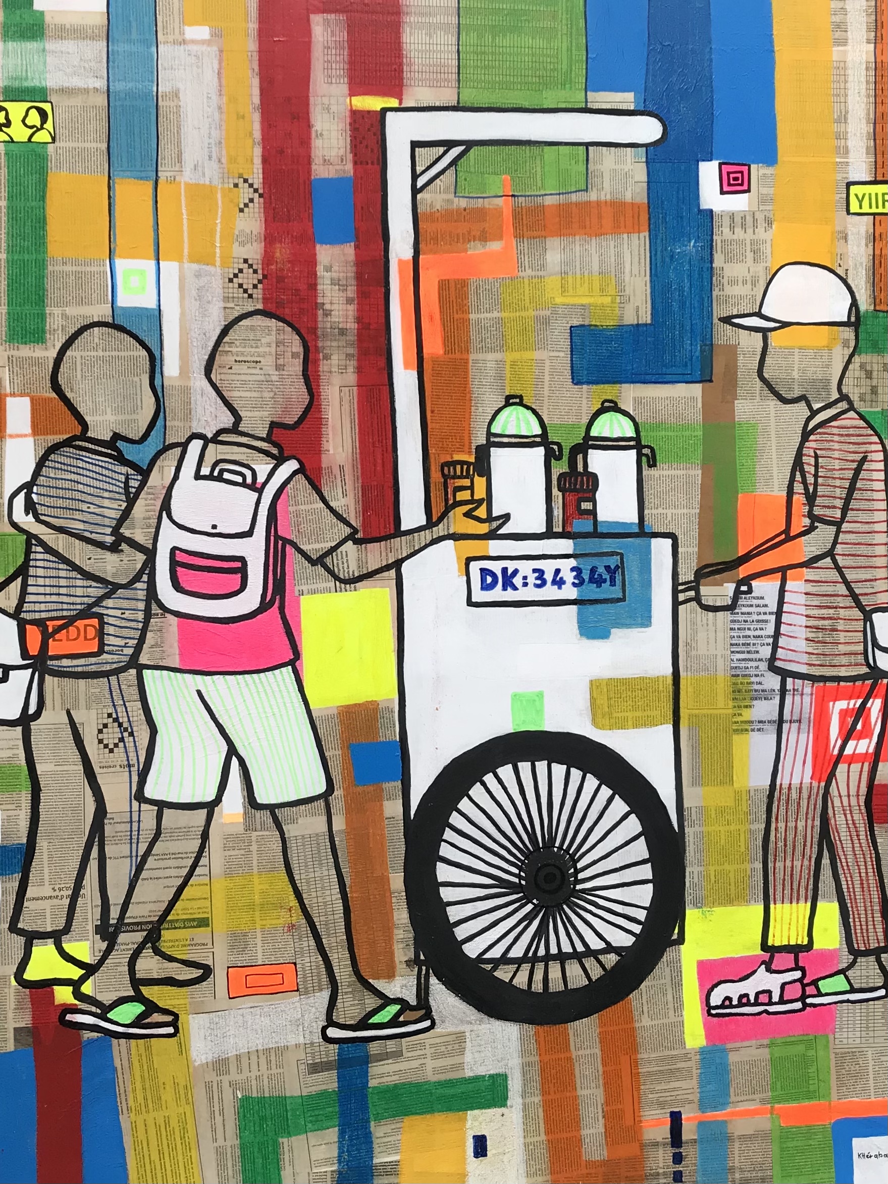 En célébration de la journée internationale de l’enfant le 20 novembre 2021 qui clôturera l’exposition, nous sommes ravis d’exposer cet artiste qui a été inspiré par les 7Y en Wolof commençant par Y : Yar : Yiir : Yor : Yedd : Yemale : Yee : Yeug qui signifient Éduquer… Protéger… Prendre soin…. Conseiller … Garantir les droits … Éveiller et donner de l’amour et de l’affection à un enfant. Ses œuvres sont un véritable plaidoyer en faveur de l’enfant: elles interpellent sur la stigmatisation sociale et la violence systémiques auxquelles sont confrontés de nombreux enfants des rues, dans la plupart des environnements urbains d’Afrique.