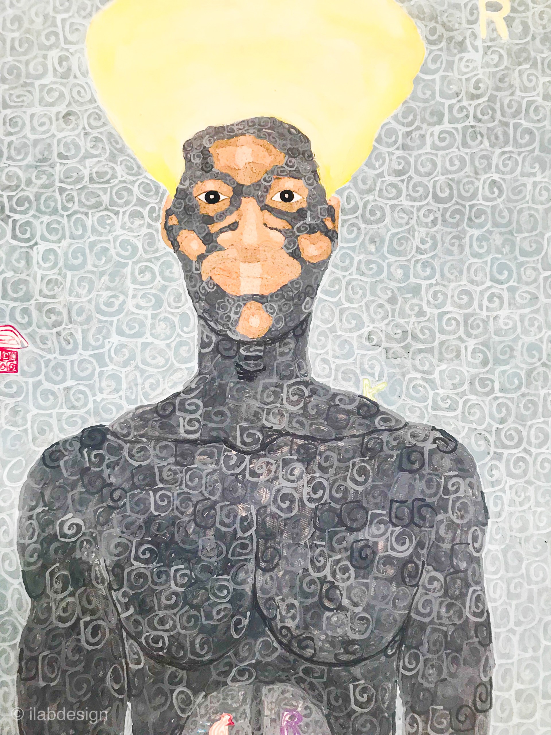 Le diptyque réalisé par Kassou Seydou, artiste d’origine sénégalaise « Capitale Wallah Région » (Capitale ou Région) dépeint une dualité entre urbanité et ruralité. Nous assistons à l’autopsie de deux individus et à leurs préoccupations. Au centre de leur abdomen, les symboles expriment leurs priorités. Pour l’homme rural, il s’agit de machines agricoles, de terre, de bétail, de pluie ou d’hivernage. Pour l’homme urbain, il s’agit d’électricité, d’eau courante, d’actes de consommation ou de moments de société tels que les repas.