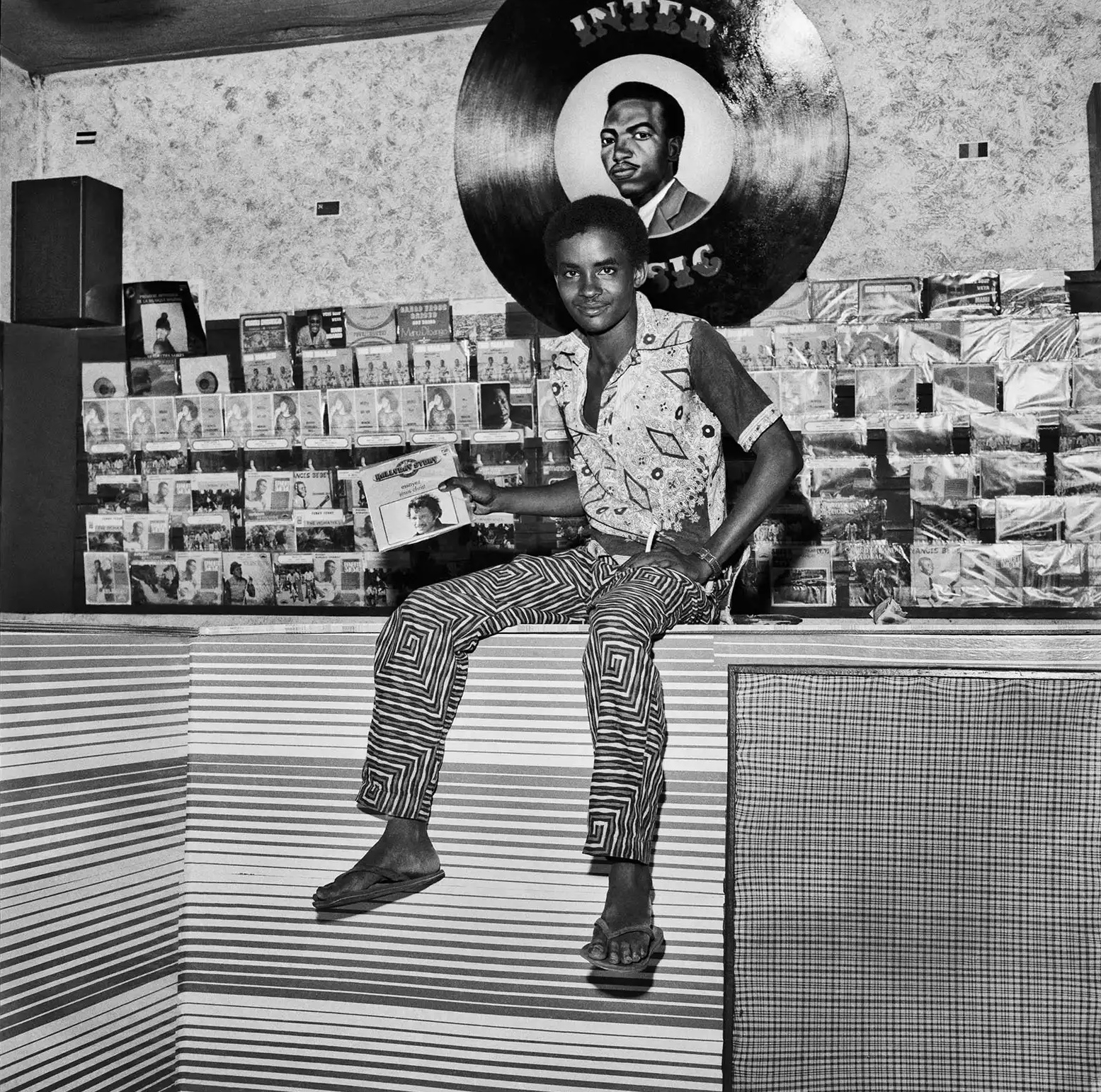 SANLÉ SORY photographe Burkinabé crée dans les années soixante, le Studio Volta Photo véritable espace de magie et de fantaisie sur plusieurs décennies (1960-1985). Ses photographies -archives vivantes ou instantanés de vie prises sur fonds de scènes peints, utilisent des accessoires de modernité de l’époque: téléphone, guitares, transistors, motos ou disques. Les vinyles symbolisent une véritable révolution culturelle post indépendance. Les photographies de Sanlé SORY célèbre les nuits yéyées de Bobo Dioulasso et sont la bande-son originale et pourtant silencieuse de ces années d’exubérance rythmée par la musique yéyé, le jazz, le rock ou les groupes voltaïques émergents – chacun y entend ce qu’il veut
