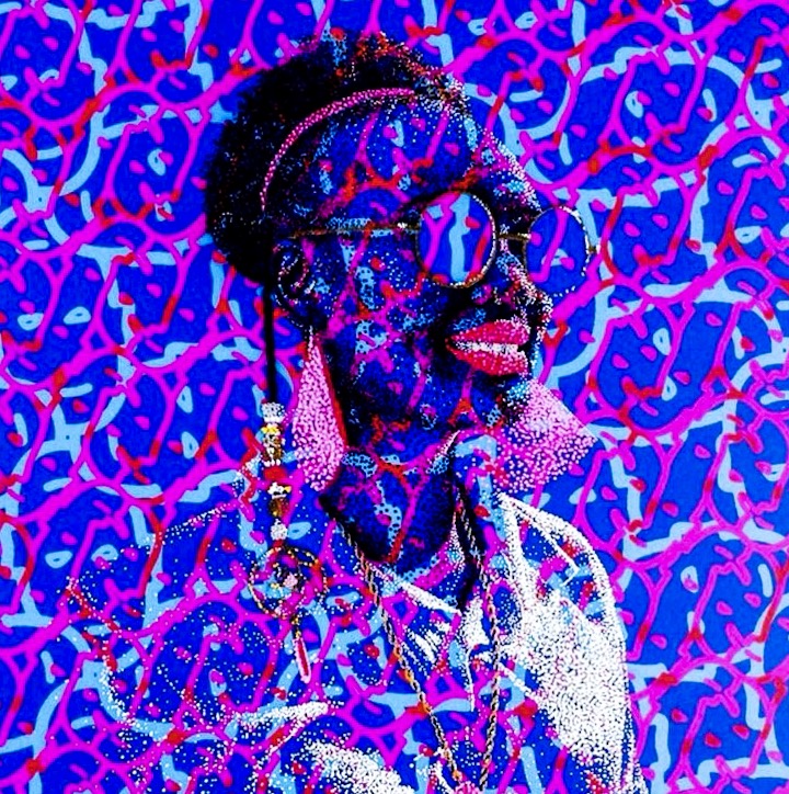 Il y a deux parties dans les œuvres d’Evans Mbugua. Le fond du tableau ressemble à un tissu couvert de motifs stylisés, répétitifs. Ces pictogrammes, l’artiste les repère dans les grandes villes comme Paris, où il travaille, ou Nairobi, où il est né. Par-dessus, sur une plaque de plexiglas