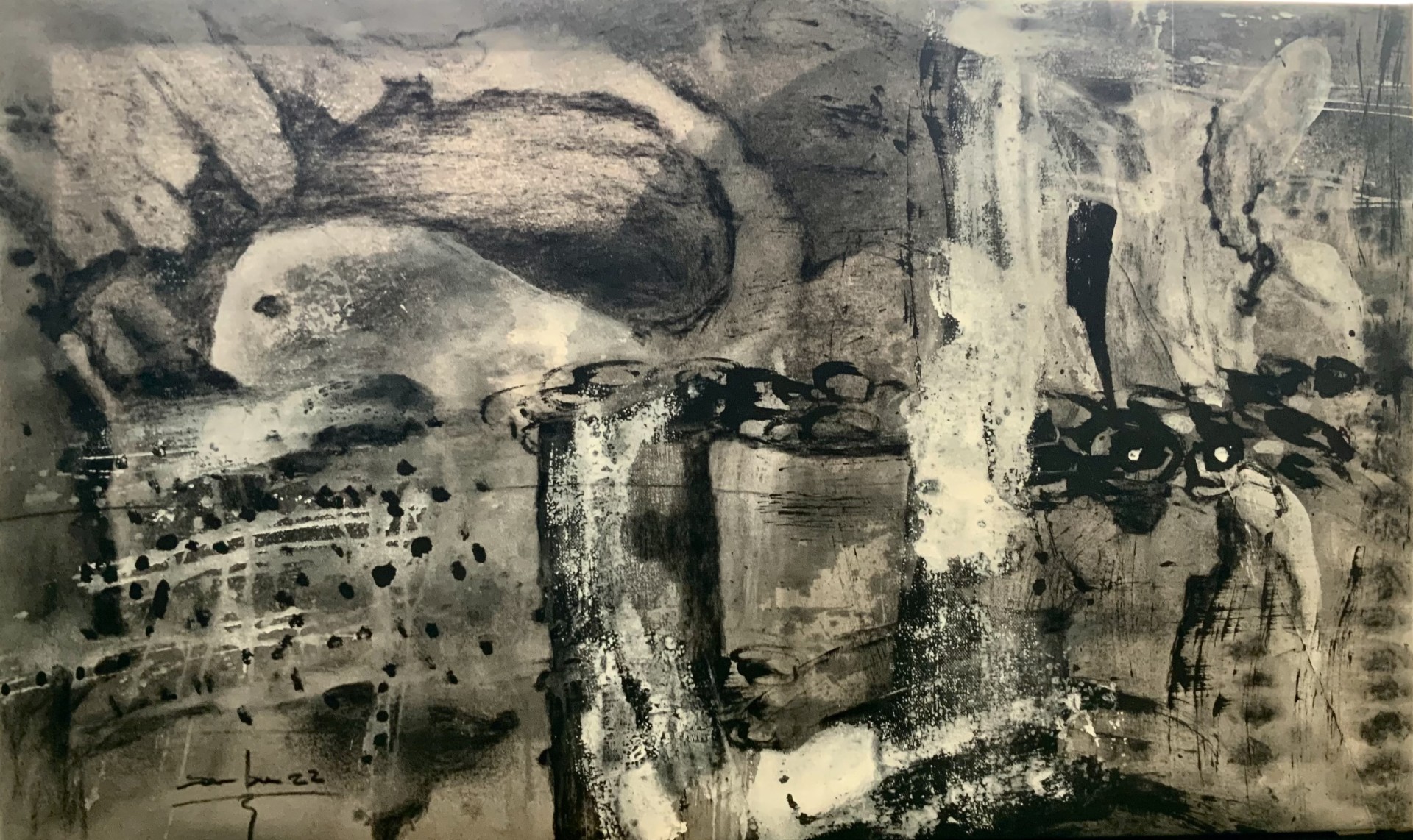 Les œuvres de Sambou Diouf sont une invitation au voyage vers un autre réel. Leurs personnages aux silhouettes atomisées et aux visages déformés sont des exorcismes picturaux.