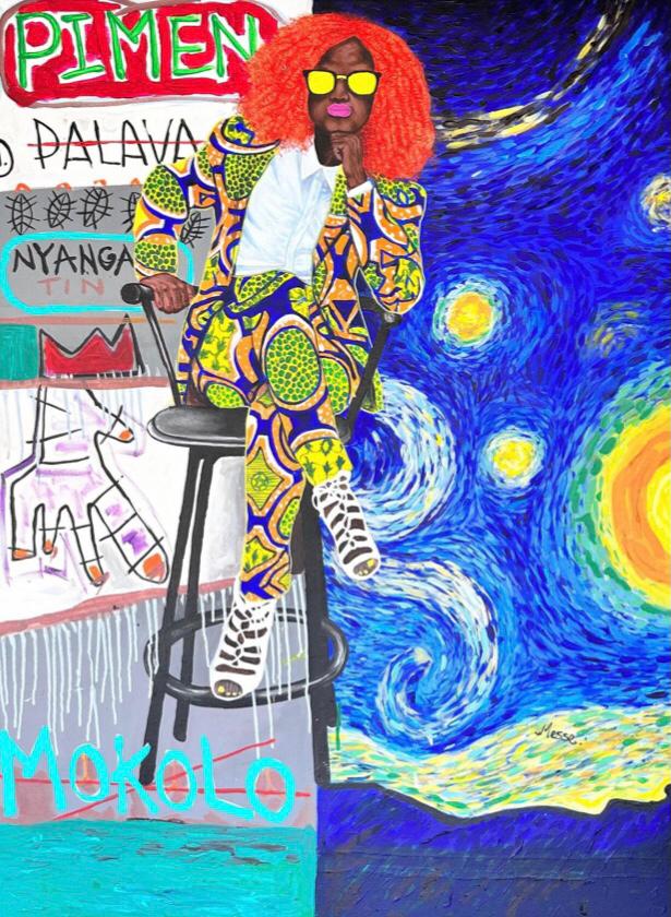 Dans cette œuvre Messe l’artiste évoque la précarité économique causée par la guerre qui a évidemment exacerbé la vulnérabilité des jeunes femmes. Souvent déplacées, elles se voient contraintes d’avoir des relations sexuelles en échange d’un abri, et certaines tombent dans la prostitution. Cette jeune femme, marchande de piments — un terme utilisé pour désigner celles qui se prostituent — rêve néanmoins de lendemains meilleurs, illuminés par l’espoir d’un avenir ensoleillé ….. allusion au ciel de van Gogh