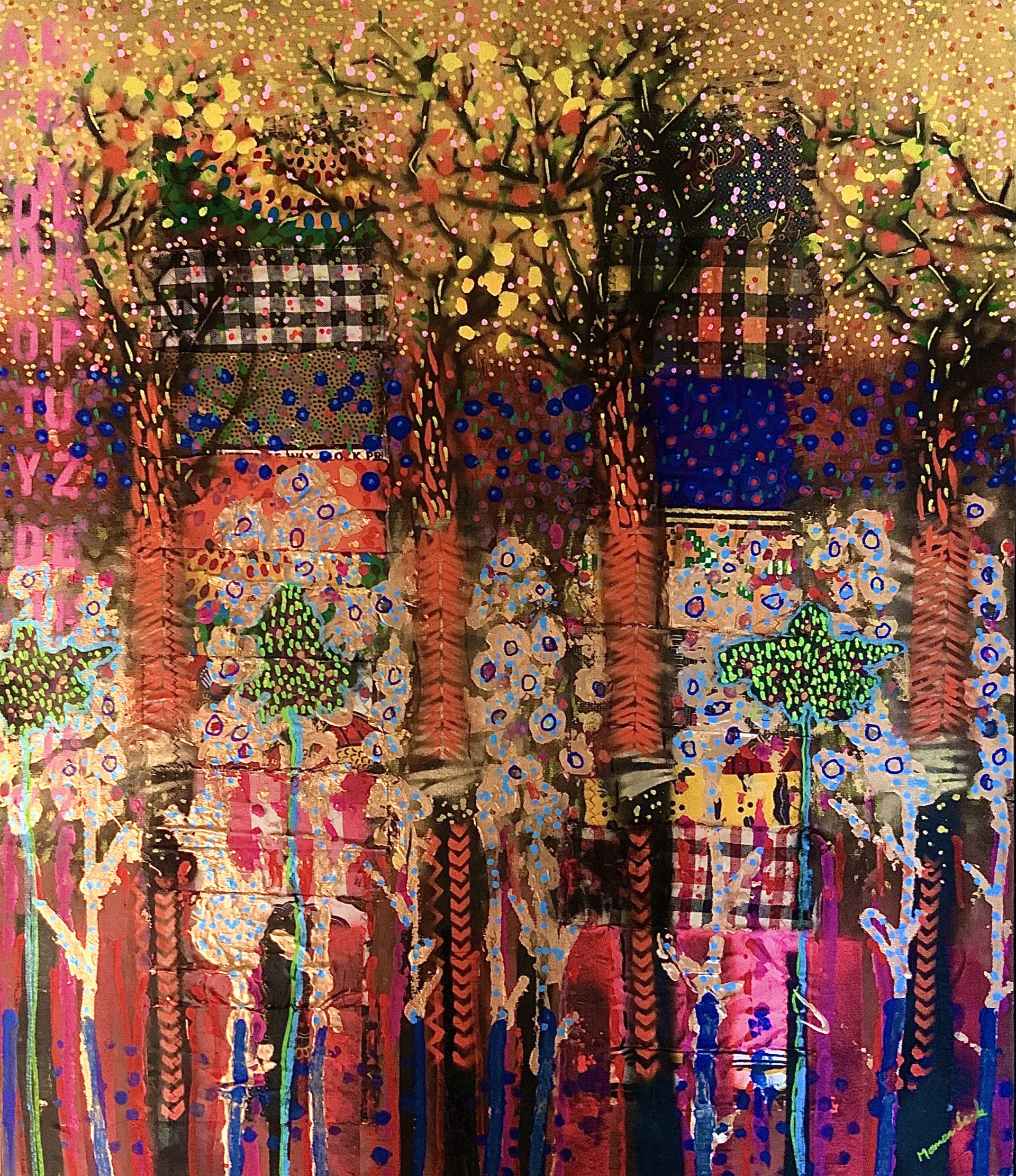Acrylique et collages de tissus sur toile